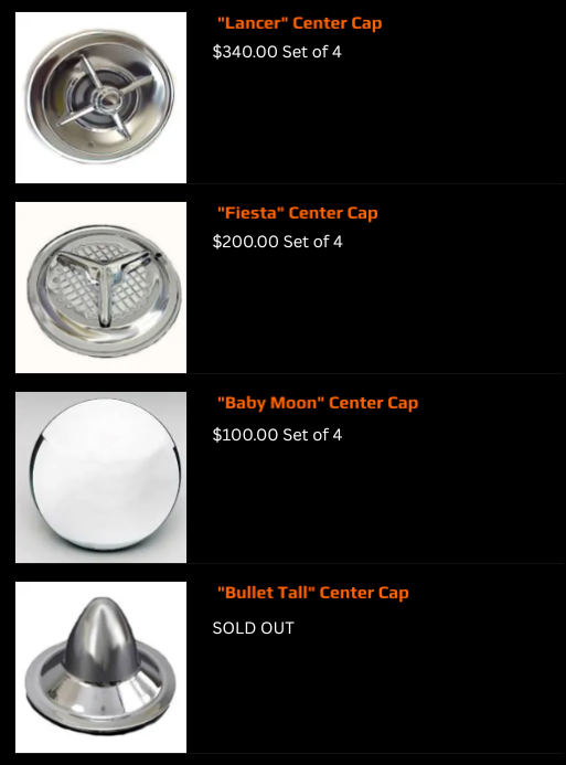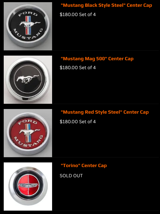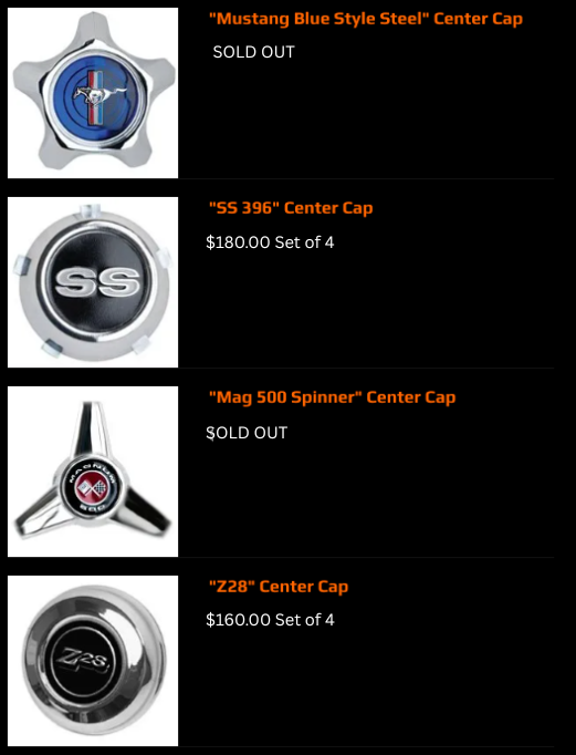Most great muscle car designs include center caps, but over the years, they have a way of getting lost. If you're looking for Mustang, Torino, Chrysler, or any other center caps, be sure to contact us a soon as possible. Even if we don't have it in stock, we can get you the caps you need in one to three business days.